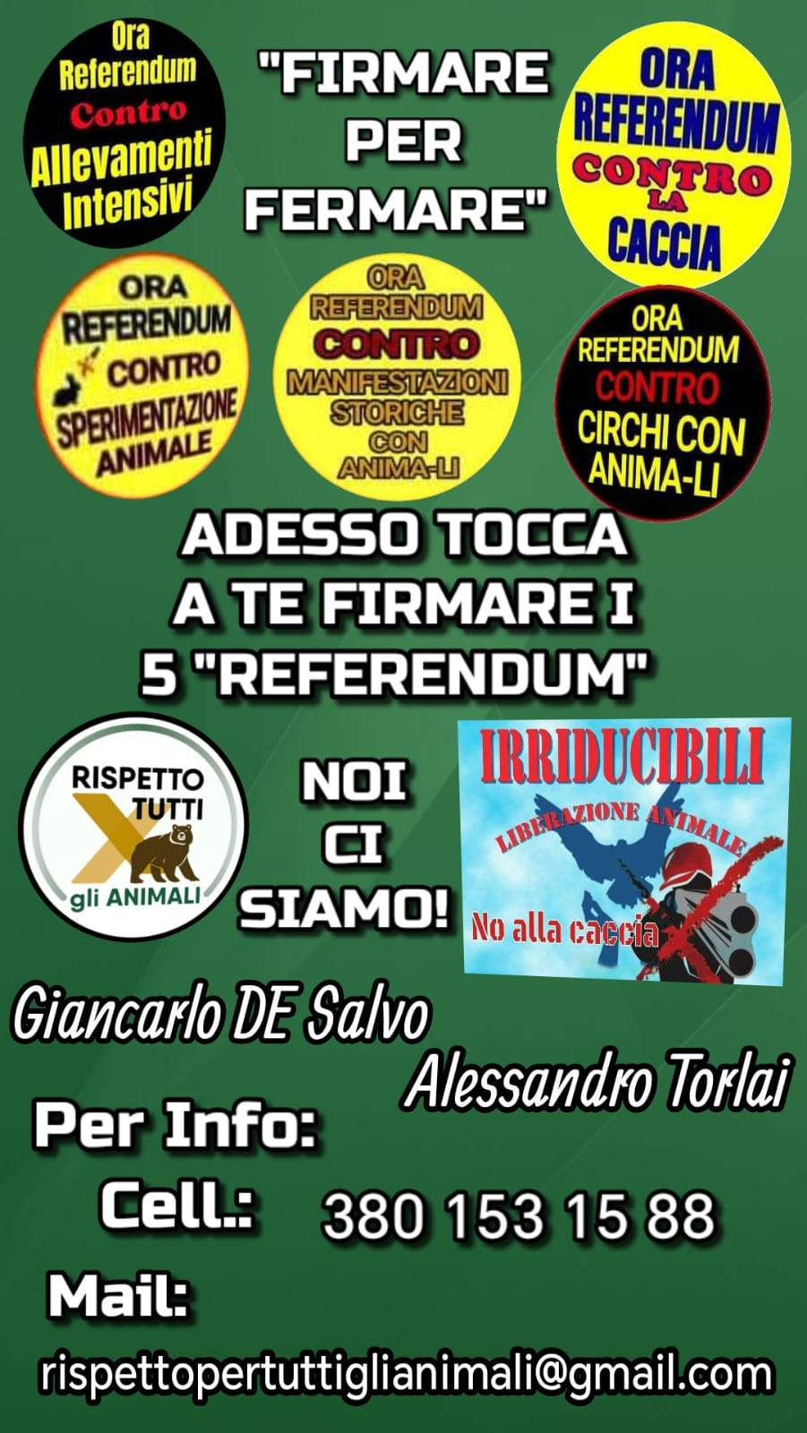RACCOLTA FIRME - ASSOCIAZIONE ORA REFERENDUM CONTRO LA CACCIA